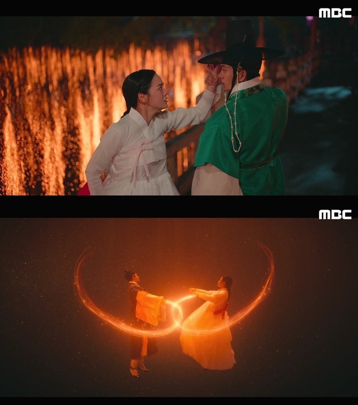 그리고 그 순간, 박달이의 손목에 있던 홍연의 흉터가 통증을 일으키며 빛을 냈다. 놀란 두 사람은 그대로 강에 빠졌고, 강물에 두 사람의 피가 섞여들면서 끊어졌던 두 사람의 홍연도 이어지기 시작했다.
