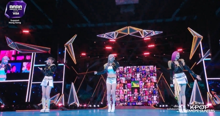 이어 아현, 파리타, 로라는 극 중 주인공이 속한 그룹 헌트릭스로 분해 대표곡 '골든'을 열창했다. 특히 초고음 파트를 완벽하게 소화해내며 관객들의 환호성을 이끌어냈다.