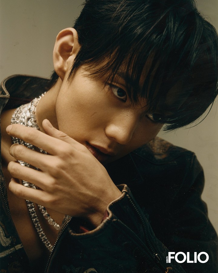 커버 이미지에서는 빈티지한 가죽 재킷과 화려한 주얼리를 매치해 강렬하면서도 고급스러운 분위기를 자아냈다. 깊게 파인 지퍼 디테일과 중첩된 네크리스가 시선을 끌며, 남성적인 카리스마와 스타일리시한 무드를 동시에 보여줬다.