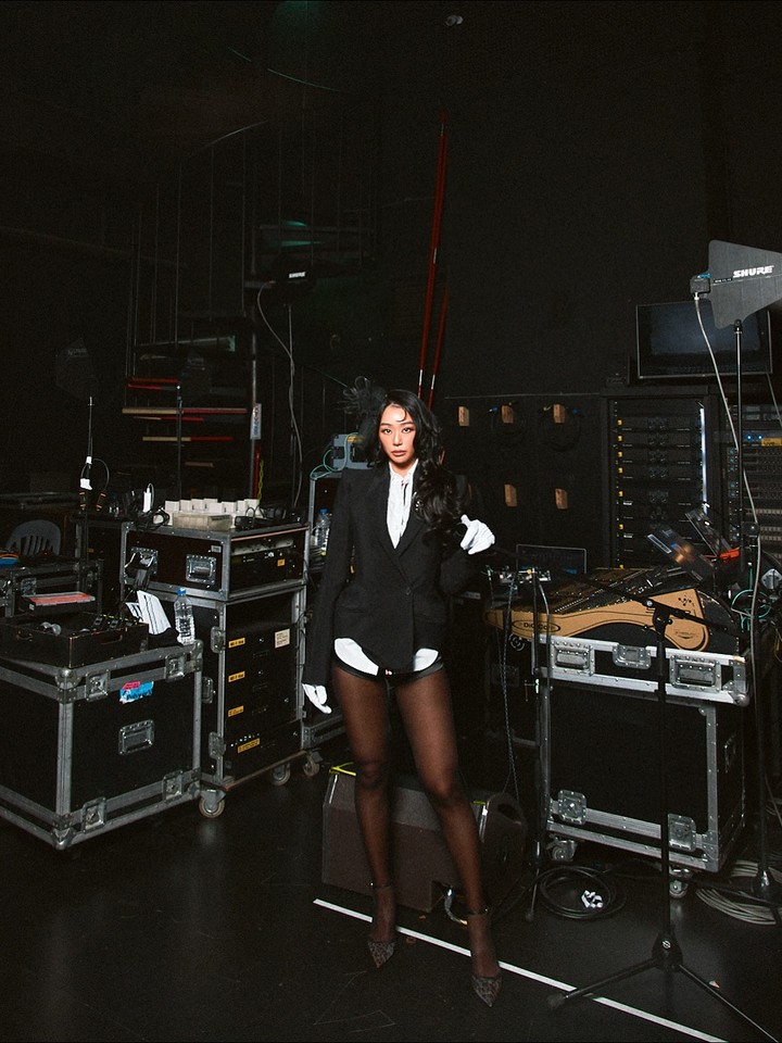 공개된 사진 속 효린은 블랙 슈트에 화이트 셔츠를 매치하고, 시스루 스타킹과 하이힐로 포인트를 더해 강렬한 카리스마를 발산했다. 무대 장치와 조명 사이에서도 프로페셔널한 포즈로 ‘원조 섹시퀸’의 위엄을 보여줬다.