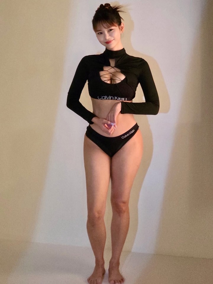 특히 가슴 라인을 따라 절개와 스트랩 디테일이 들어간 상의는 시크하면서도 대담한 분위기를 자아내며 시선을 집중시켰다. 헤어는 정돈된 업스타일로 연출해 얼굴형을 돋보이게 했고, 은은한 메이크업과 함께 맑은 피부결이 부각돼 전체적인 스타일의 완성도를 높였다.