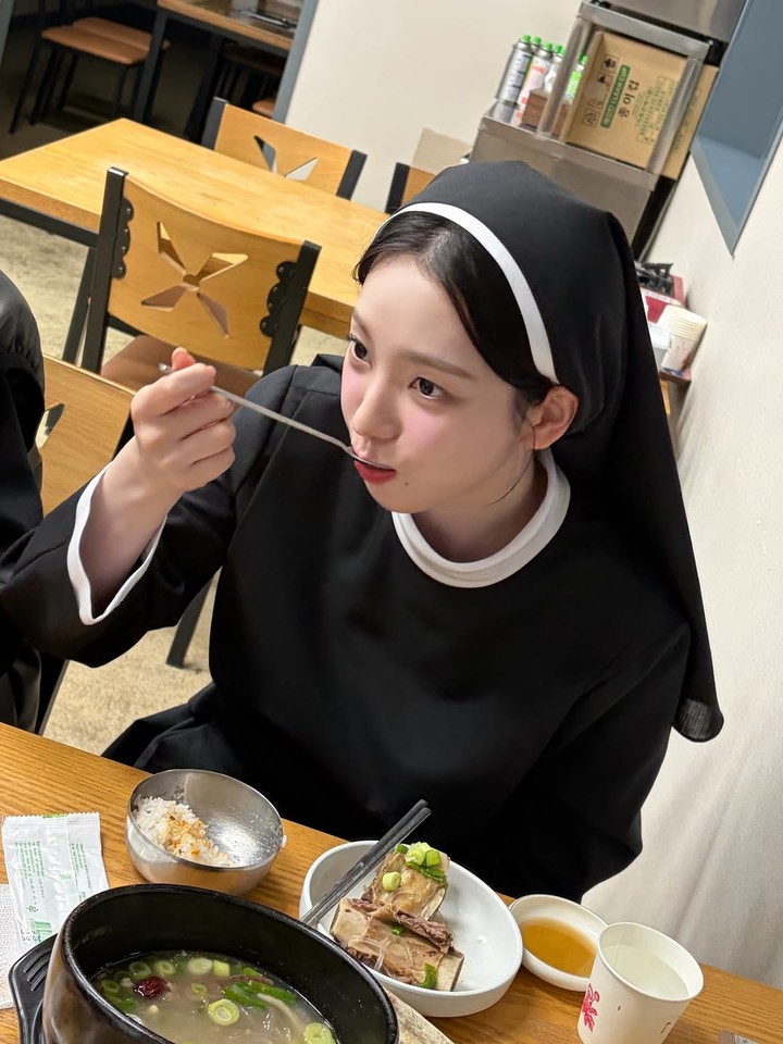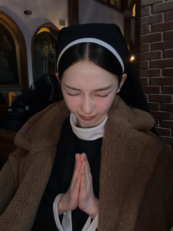 식당에서는 수녀복 차림으로 은은한 미소를 지어 보이며 청초한 무드를 완성했고, 초근접 셀카로 또렷한 이목구비를 강조해 시선을 끌었다.